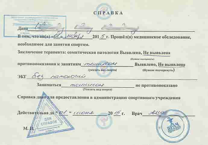 Купить справку для спортивной секции